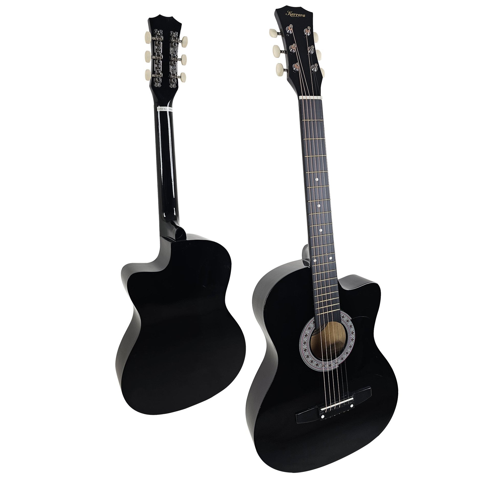 These 38-inch acoustic guitars are finely crafted for beginner to intermediate-level players. The Karrera high-gloss polished finish and excellent build quality of this hand-crafted instrument will really impress.